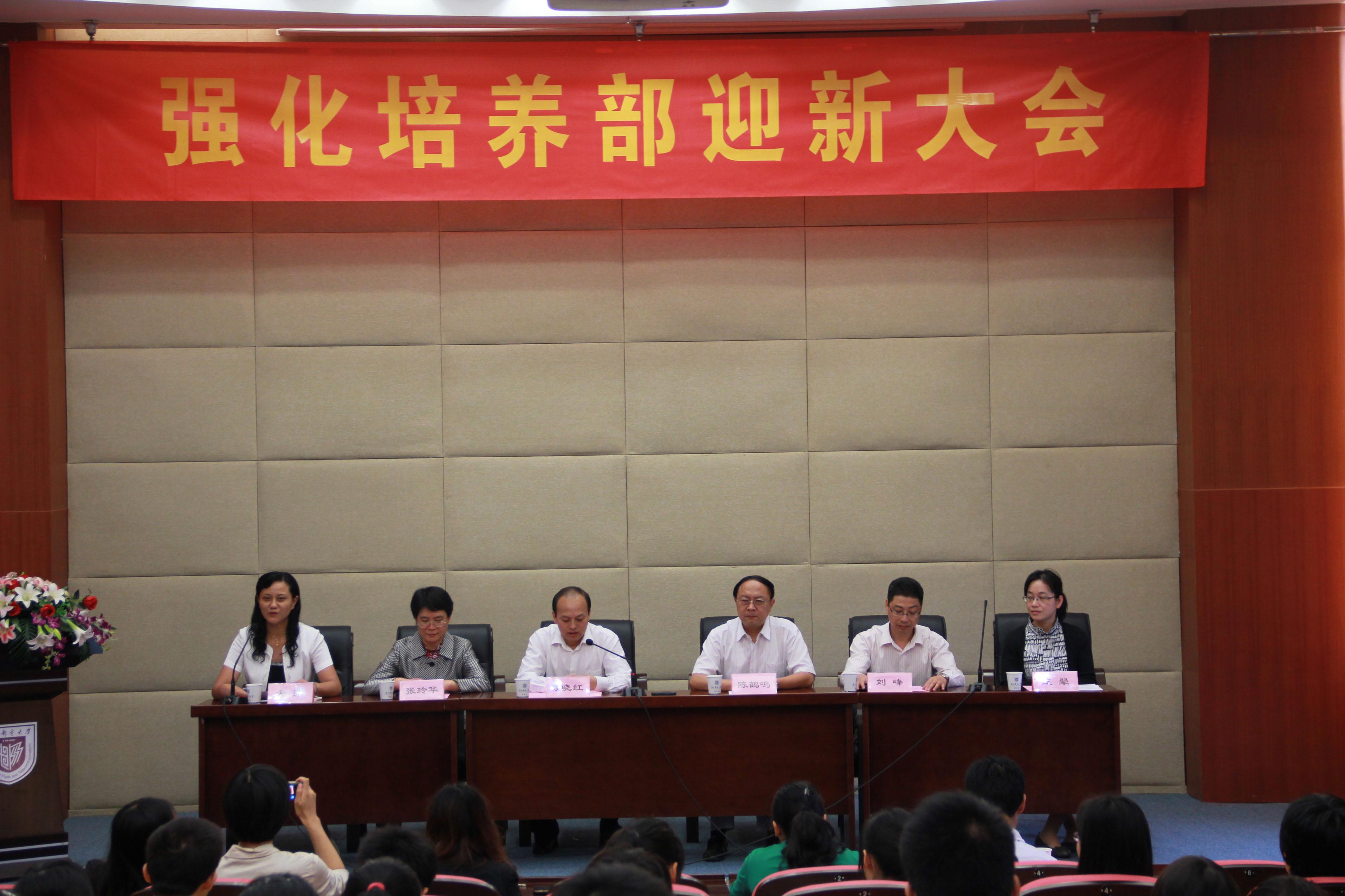 强化培养部副主任刘峰、兼职副主任张玲华、直属党支部副书记、分团委书记王玮、辅导员、班主任、老生代表及2012级全体新生出席了迎新大会。