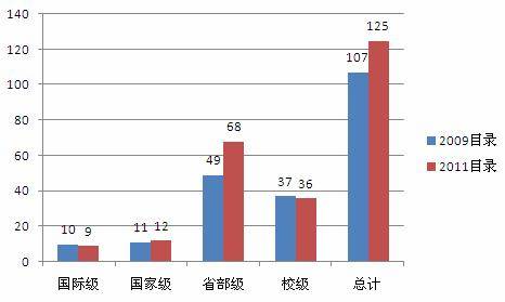 图2 本科生科技竞赛目录变更情况(2009、2011)