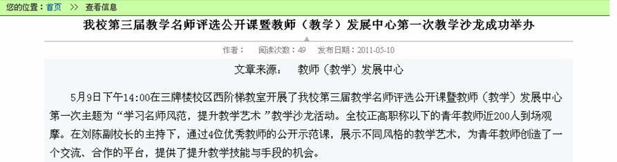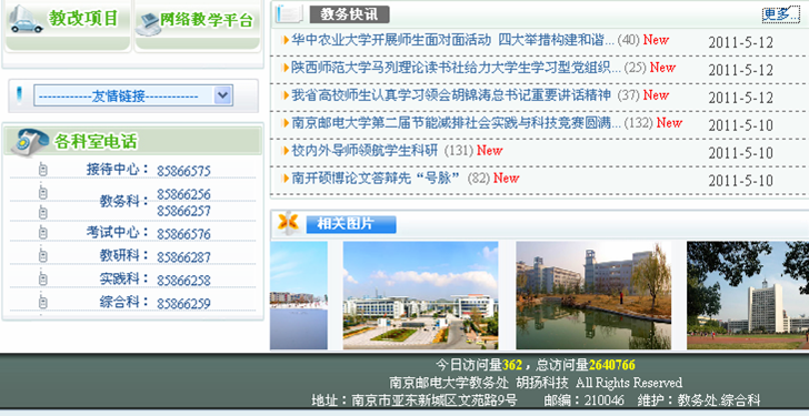 改革教务处网站“教务快讯”栏目,扩大信息来源,将教育教学改革最新动态、领导重要讲话、上级通知公告、其他省份高校的新鲜经验等内容、我校教学新闻、教学例会相关信息都囊括其中,坚持时常更新,为广大师生了解教育动态,解放教育思想提供有益的参考,充分发挥网站的“窗口”作用,得到各级部门和教师的认可。