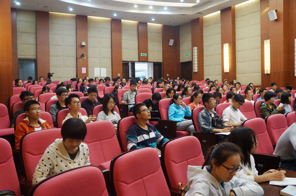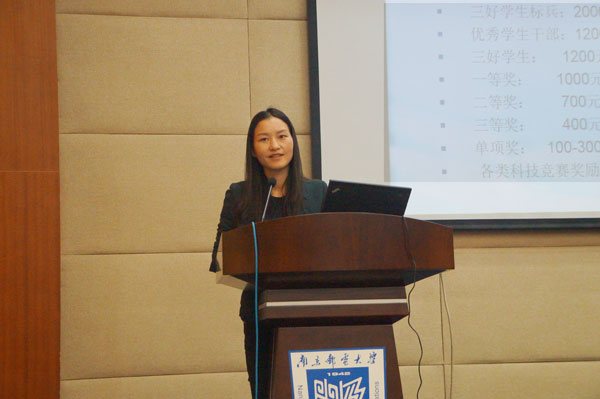教务处学业指导中心田甜老师向参加活动的2015级学习委员介绍了中心开展的主要工作,南京邮电大学“紫金大讲堂”――企业家讲座、与学生学业密切相关的南京邮电大学学业指导咨询会等,建立了2015级学习委员工作群,希望在各位学习委员的共同努力下,让每一位2015级学生及时知晓中心工作,将工作落在实处。