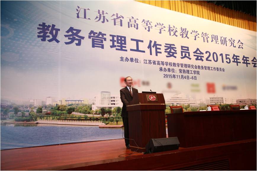 2015年11月4日-6日,由江苏省高等学校教学管理研究会教务管理工作委员会主办,常熟理工学院承办的2015年省教务管理工作年会在常熟召开,来自全省109所高校教学管理部门的320余位嘉宾参会。省教育厅高教处袁靖宇处长出席会议,我校教务处处长王友国作为教务管理工作委员会副理事长受邀率队参会。