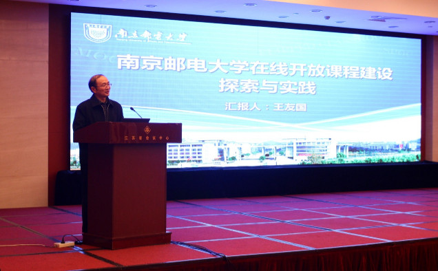我校教务处处长王友国作了《南京邮电大学在线开放课程建设探索与实践》的专题报告,王处长结合我校在线开放课程建设的经验,从课程建设背景、我校具体工作实践及典型课程案例等三个方面,介绍了我校在线开放课程建设的情况与经验,阐述了在线开放课程建设与应用在推进教学改革、提高本科教学质量中的重要作用。