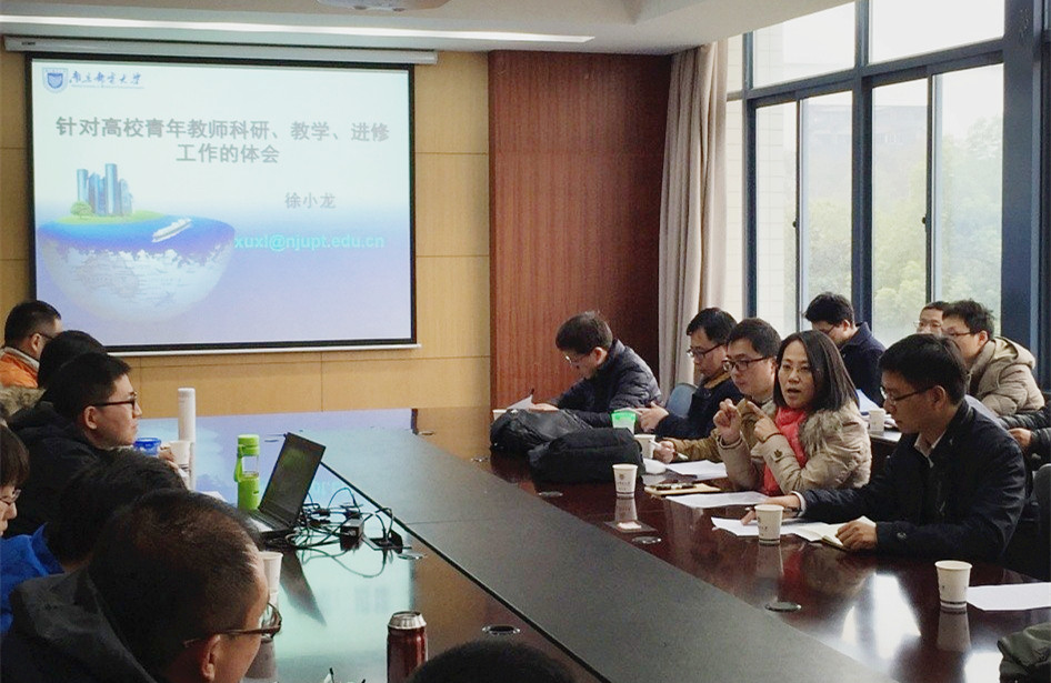 11月25日下午,在仙林校区行政楼第三会议室,教师教学发展中心举办了2015年新进青年教师教学培训。校教学名师——计算机学院、软件学院徐小龙教授作了题为“针对高校青年教师科研、教学、进修工作的体会”专题报告。2015年新进教师及部分青年教师参加了本次培训。培训由教务处副处长兼教师教学发展中心副主任赵允玉主持。