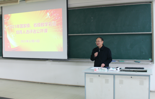 2015年12月14日下午,我校2015年“国家级、省级教学名师培育人选”评选公开课在仙林校区教3-401教室举行。公开课由教务处处长王友国教授主持。各学院(部)教学院长(主任)、各教学中心(系)主任、青年教师观摩了本次公开课。