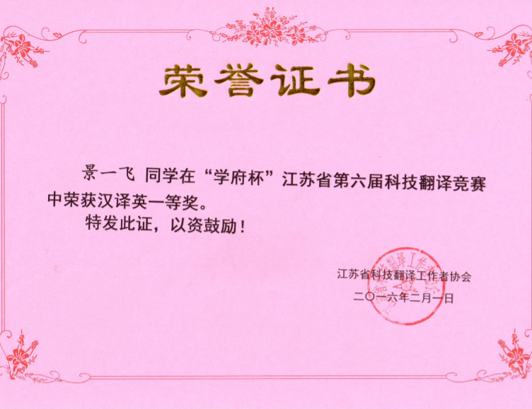 “学府杯”江苏省第六届科技翻译竞赛结果近日揭晓,我校学生表现出色、成绩傲人,共有22名同学揽得各类奖项。