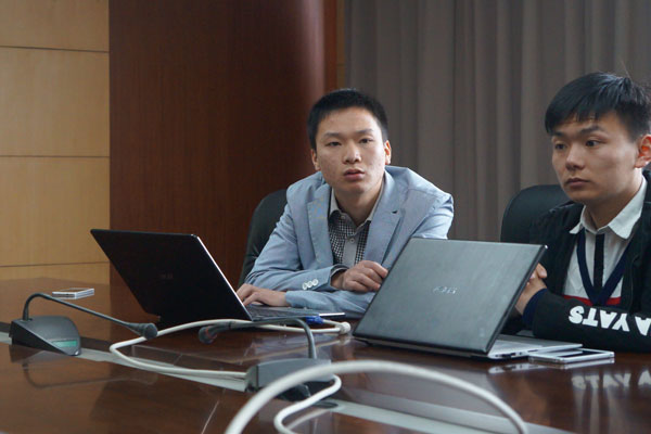 王书豪同学(左)报告