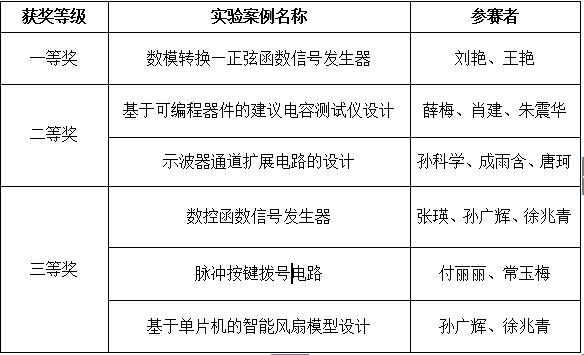 表1. 电工电子实验案例设计竞赛获奖名单