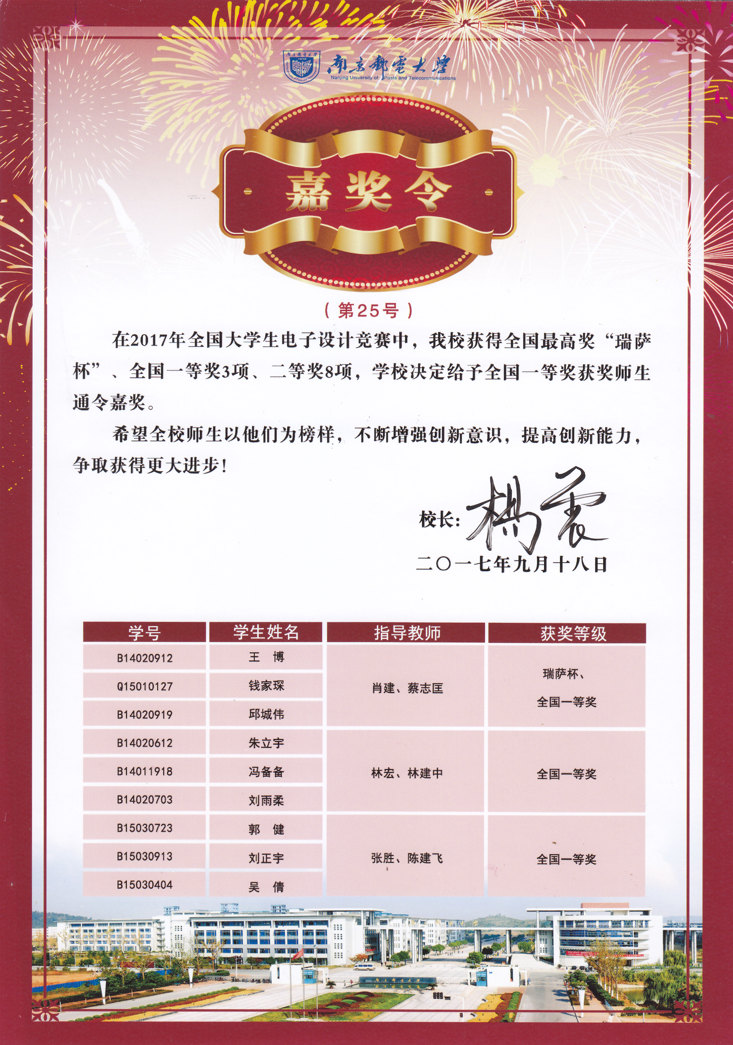 杨震校长签发嘉奖令表彰我校“全国大学生电子设计竞赛”获奖师生