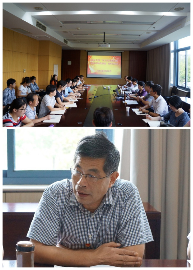 根据学校和机关党委的统一部署,9月26日上午,教务支部在仙林行政楼第三会议室组织召开“学习党风廉政建设相关制度规定”专题组织生活会。会议由支部书记张玲华主持,教务支部全体党员参加了会议。