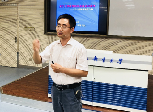 校教学名师、理学院田友伟副教授作了题为“关于大学教学的几点体会与思考——以大学物理教学为例”的报告。他从备课前准备、精心备课、认真上课、课后反思、作业批改、考试总结、授课的几点建议等七个方面,阐述了做好课堂教学的重点。