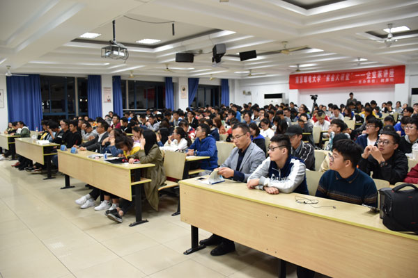 10月18日晚,由教务处主办、理学院承办的南京邮电大学“紫金大讲堂”――企业家讲座第80次活动在仙林校区教3-301举行。南京喜之郎有限公司总经理腾云先生做客 “紫金大讲堂”,作题为“如何成为一个成功的人”的讲座。讲座由理学院李兴鳌院长主持。