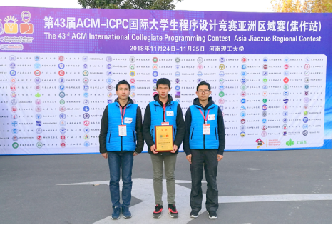 11月25日,第43届ACM国际大学生程序设计竞赛(ACM-ICPC)亚洲区域赛(焦作站)在河南理工大学落下帷幕。我校贝尔英才学院2015级学生邹子昕和计算机学院、软件学院、网络空间安全学院2015级学生李争彦、张威组成的“拯救世界”代表队荣获金奖。