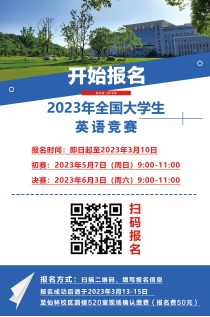 全国大学生英语竞赛(National English Contest for College Students,简称NECCS)现已开始报名,这是全国唯一的大学英语综合能力竞赛活动。