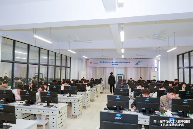 第十届华为ICT大赛中国赛江苏省实践赛决赛分为昇腾AI赛道、网络赛道、云赛道、基础软件赛道,近七百名考生参加本次决赛。考试现场气氛紧张而有序,参赛学生全神贯注地投入到紧张的实操比拼中。