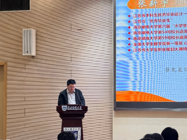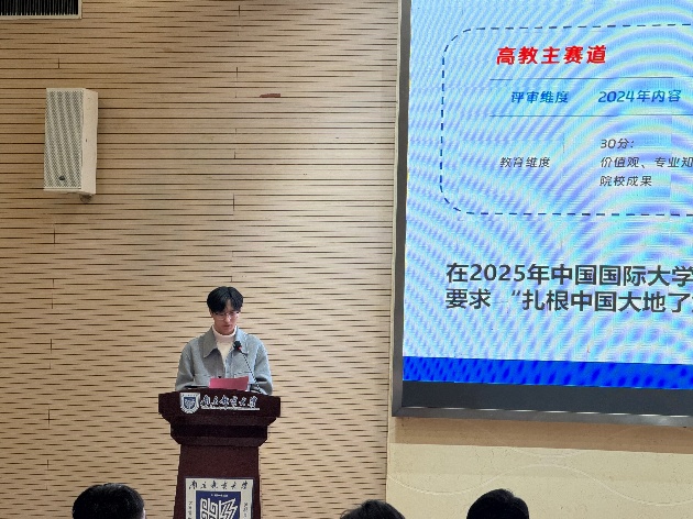 张徐主任在大会上总结了我校在2025年中国国际大学生创新大赛取得的优异成绩,我校在国赛阶段以四金、三银、三铜的获奖质量及数量位居全省前列。立足新起点,他也提出各学院需要固化有效机制,夯实好备赛基础,要推动双创与思政深度融合,深化双创教育改革,同时加强组织宣传,营造良好的校园双创文化,争取在2026年比赛中取得好成绩,不断擦亮“无创新 不南邮”的名片。