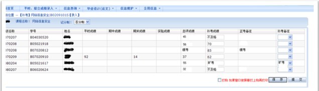 4.若有参加考试但在网上名单中没有的学生,请成绩录入教师在《补考手写成绩登记表》上手写登记成绩,以便核查;《补考手写成绩登记表》见附件。