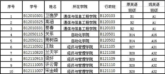 【教务科】2013-2014学年第一学期2012级《大学英语》B班升入A班学生名单