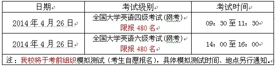 为做好我校4月份全国大学英语四、六级考试(网考)报名工作,现将有关事项通知如下: