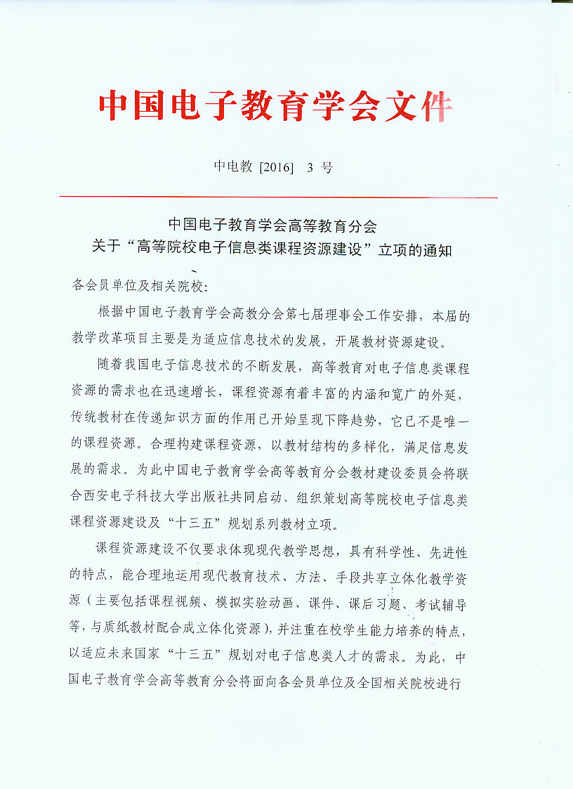 附件1:中国电子教育学会高等教育分会关于“高等院校电子信息类课程资源建设”立项的通知