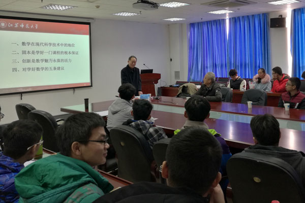 2016年12月15日下午13:30,理学院在教2-314会议室举行理学论坛第93次学术活动,江苏师范大学戴朝寿教授应邀莅临我院并做了题为“让数学的火焰燃烧得更加光彩夺目”的报告,报告会由理学院副院长兼统计学系主任唐加山教授主持。
